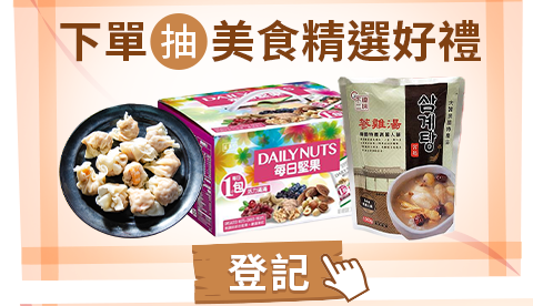 【盛香珍】每日堅果量販盒700g/盒(28小包入) X1盒抽1名額或【食在好神】整蝦霸餛飩(240克/包) X2盒抽10名額或【韓味不二】韓國第一品牌人蔘雞湯禮盒(1kg*3入)X1入抽3名額。 - 參與活動商品:參與活動商品為商品頁面有【美食3月★下單抽美食精選好禮】登記活動標示之商品始適用。