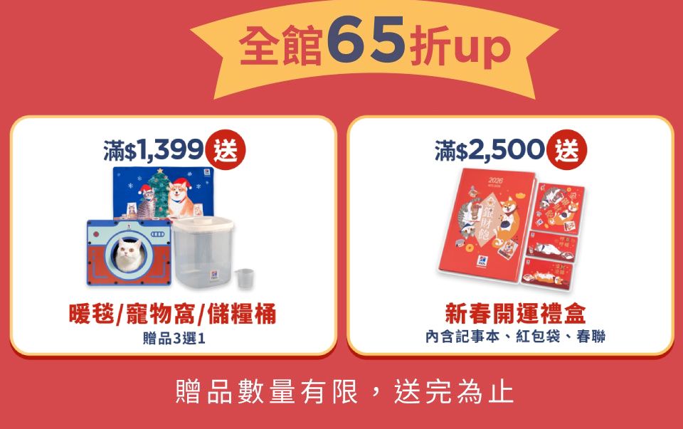 - 優惠商品數量有限,售完為止,本廣告活動頁商品規格、顏色、價格、贈品,若與購物車不符,以結帳車標示為準。