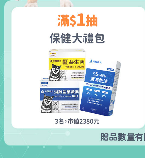 - 活動將於2025/12/31前完成抽獎作業,獎項將由「毛孩時代」品牌商與中獎會員聯繫進行兌獎流程,獎品將於兌獎流程完成後寄出。