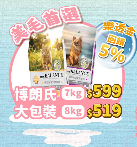 - 購買『博朗氏貓飼料7KG(商品編號:7528814)、博朗氏狗飼料8KG (商品編號:7546477)』,加碼回饋該品項結帳含稅發票金額之5%樂透金。