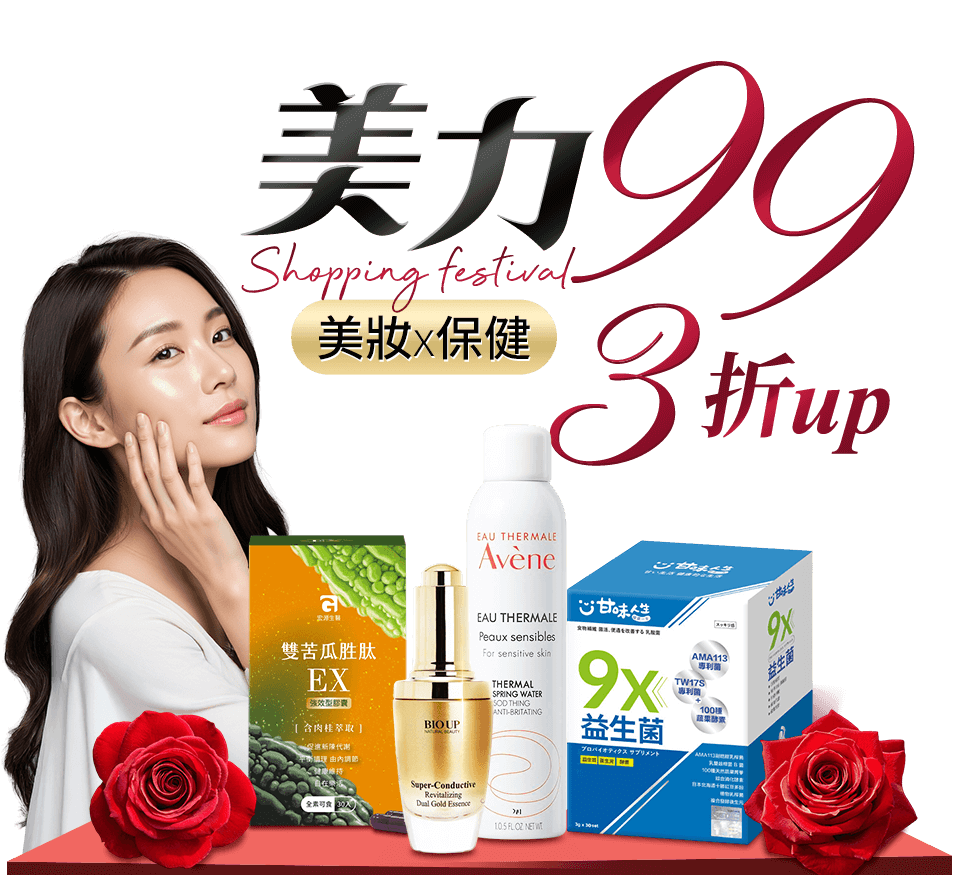 - 活動專區商品:以商品頁面標示【美力99★美妝x保健3折up】為準