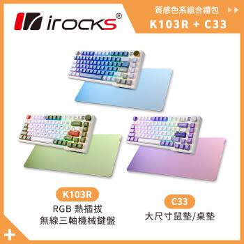 irocks K103R 機械式鍵盤-熱插拔-RGB背光- 莓紅軸/奶茶軸+C33 大尺寸滑鼠墊 組合