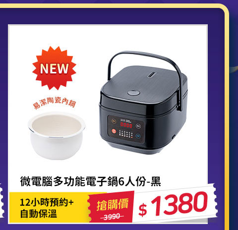 【CookPower 鍋寶】微電腦多功能電子鍋6人份-黑(RCO-360)