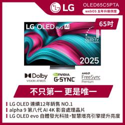 LG 樂金 65吋 LG OLED evo AI C5極緻系列 4K 智慧顯示器(可壁掛)-OLED65C5PTA(含基本安裝)