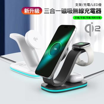 Qi2三合一磁吸無線充電板 MagSafe無線充電器 無線快充 iPhone手機/AirPods耳機/Apple Watch手錶