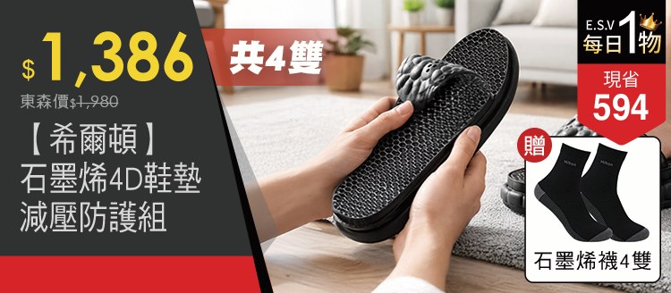 【希爾頓】石墨烯4D鞋墊減壓抑菌防護組-ESV