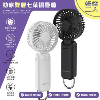 【超值二入】Polybatt 勁涼雙層扇葉 USB充電隨身風扇(手持式/可折疊/大容量電池/五段可調速)