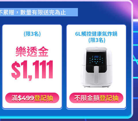 - 贈品抽獎時間預計為2025/12/25,【樂透金】預計於12/31匯入,使用效期14天,請留意使用期限,逾期恕不補發。(會以APP推播通知,恕不另行通知)。【鍋寶健康氣炸鍋】將於東森購物與中獎會員聯繫兌獎流程後寄送。