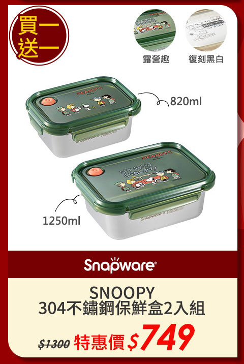 【美國康寧】Snapware SNOOPY 真好吃 可微波304不鏽鋼保鮮盒2件組-B02 (兩款任選)