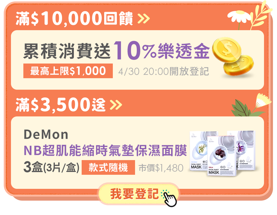 【保健★滿額登記送Demon面膜3盒活動】活動辦法