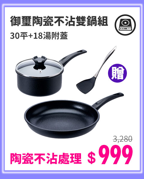 【CookPower 鍋寶】煎大師聚油不沾雙鍋四件組30cm-兩色選(30炒+30煎+30蓋+木鏟)