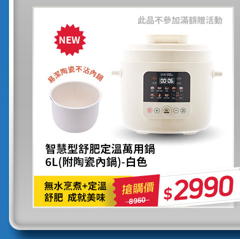 【CookPower 鍋寶】智慧型舒肥定溫萬用鍋/壓力鍋6L(CW-6211BA)
