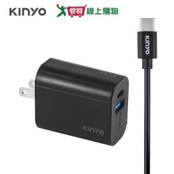 KINYO 20W氮化鎵雙孔自帶線充電組 黑 APDCB-002【愛買】
