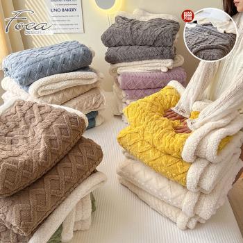 【FOCA】超值買一送一 立體編織緹花保暖沐綿絨羊羔絨雙面毯(150X200cm/多款任選)