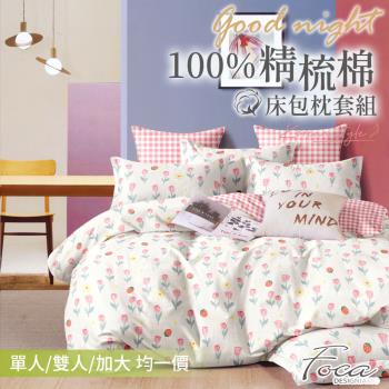 任-【FOCA】100%精梳純棉床包枕套組(單人/雙人/加大 均一價)-多款任選