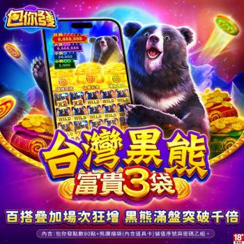 內含包你發點數80點+熊讚禮包(含道具卡)儲值序號與密碼乙組。熊讚禮包:隨機獲得【台灣黑熊 富貴3袋】遊戲之一般廳1~3星或體驗廳5星道具卡(威力卡、威力卡+)1張。