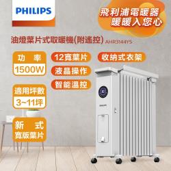 快速出貨【單機】【PHILIPS飛利浦】油燈葉片式取暖機(遙控)12片新式寬片體 溫控3檔調溫-AHR3144YS