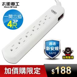 太星電工 電腦線一開六插延長線/3P/15A/4尺 OCB61304