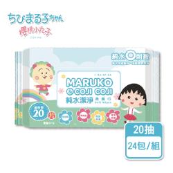 櫻桃小丸子 純水潔淨柔 濕紙巾 隨身包 20抽x4包x6串(共24包)