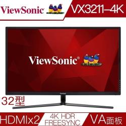 Viewsonic優派 VX3211-4K-mhd 32型VA面板4K解析度HDR電競液晶螢幕