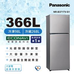 Panasonic國際牌366公升一級能效雙門變頻冰箱(晶鈦銀)NR-B371TV-S1-庫