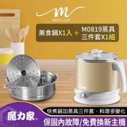 ★人氣超值必買組★【MOLIJIA 魔力家】即食行熱-雙層防燙快煮鍋+M0819分離式蒸具三件套-超值組(美食鍋/電火鍋/料理鍋/外宿鍋/蒸籠/蒸盤)