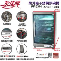 友情牌101公升四層紫外線不銹鋼烘碗機PF-6374