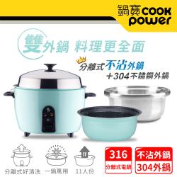 CookPower鍋寶 萬用316分離式電鍋-11人份-湖水綠(超值雙鍋組)